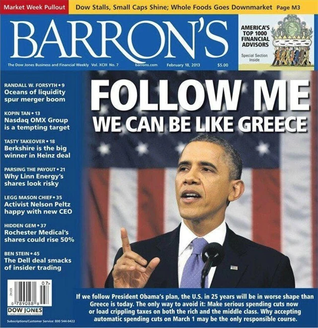 Pondělní titulní stránka magazínu Barron's naznačující analogii vývoje americké a řecké ekonomiky vzbudila rozruch. Prezident Obama v nedávném projevu o stavu Unie Američany ujišťoval, že je jejich země nyní silnější. Ale silnější než co? Rychle rostoucí zadlužení Spojených států nedává ekonomům spát.