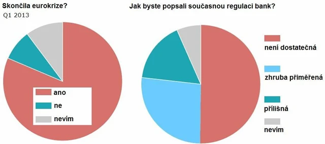 The Economist a Finacial Times se pravidelně ptají zhruba 1 500 ředitelů firem na jejich názory na ekonomický vývoj. V únoru si zhruba polovina dotazovaných myslela, že je regulace bank stále málo. A krize v eurozóně? Ta neskončila určitě, a to ještě odpovědi nezahrnovaly výsledky italských parlamentních voleb.