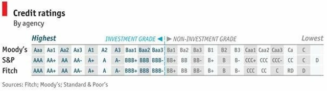 Velká Británie přišla o nejvyšší rating od Moody's 22. února, další dvě největší ratingové agentury zatím tento krok nenásledují. Jak lze vyčíst z následující tabulky, není ničím neobvyklým, že má země od různých firem různý rating, například Francie.