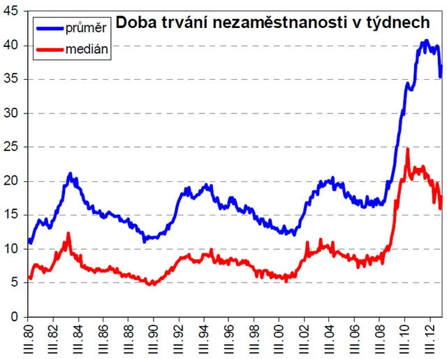 Tempo poklesu míry nezaměstnanosti je tedy v podstatě docela rychlé, srovnatelné s nejrychlejším poklesem nezaměstnanosti po roce 1970. Částečně je problém v tom, že relativně nejméně rovnoměrné bylo tempo poklesu míry nezaměstnanosti v 80. letech, kdy v první fázi klesala míra nezaměstnanosti znatelně rychleji, což vedlo k tomu, že ve srovnatelné fázi vývoje už tehdy byly nezaměstnanosti poněkud nižší. Ještě podstatně horší je to ovšem při srovnání relativního vývoje, což zřejmě vysvětluje, proč je situace na trhu práce nyní vnímána tak negativně.