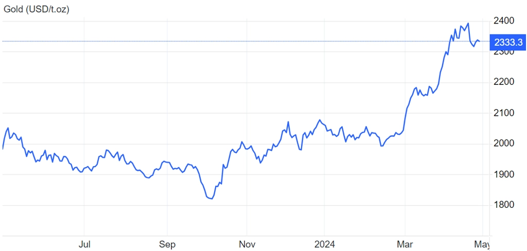 Trhy se v letošním prvním kvartálu nechávaly svádět myšlenkou na svižný pokles inflace v USA k 2% cíli Fedu, vidinou nižších sazeb a měkkým přistáním ekonomiky, kdy se USA i přes výrazné zvýšení sazeb v posledních dvou letech dokáží vyhnout recesi. Upřesněme ale, že tomuto pocitu podléhali zejména investoři do akcií, například výnosy dluhopisů od začátku roku měly tendenci spíše růst. Optimismus podporovala (a dále podporuje) i představa, že vláda USA v roce prezidentských voleb udělá hodně proto, aby odvrátila případnou recesi a přispívala k vytváření (dojmu) bohatství pro americké domácnosti (možná jen dojmu proto, že na tom americká ekonomika nemusí být až tak dobře; to ostatně naznačily i první údaje o vývoji HDP na začátku roku).
