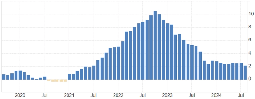 Inflace v eurozóně zůstává nad 2% cílem Evropské centrální banky. Ta předloni v červenci zahájila zvyšování úrokových sazeb s cílem dostat inflaci pod kontrolu, loni v říjnu nicméně zvyšování úroků přerušila. Od té doby držela základní úrokovou sazbu na 4,5 % a až na začátku letošního června se rada guvernéru podle očekávání rozhodla snížit úrokové sazby o čtvrt procentního bodu. Základní sazba tak klesla na 4,25 %.