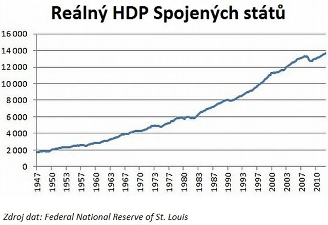 Přitom však reálný hrubý domácí produkt v USA neustále roste. Růst by snad měl ospravedlnit uvolněnou monetární a fiskální politiku.