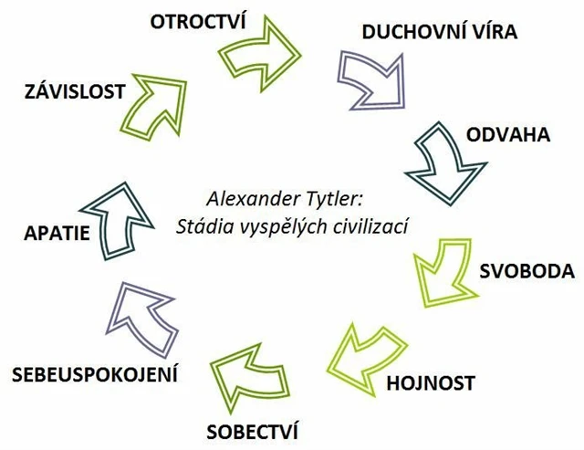 "Sílící volání Američanů po nezasahování do jejich občanských práv a stále reálnější hrozba, že se lidé na celém světě vzepřou přispívání do velké státní kasy, ve mně stále silněji vzbuzují dojem, že se naplňují slova Alexandera Tytlera o vzniku a zániku demokracie," uvedl Art Cashin, šéf UBS na parketu NYSE, který ve svých komentářích často upozorňuje na ne zcela evidentní fenomény.
