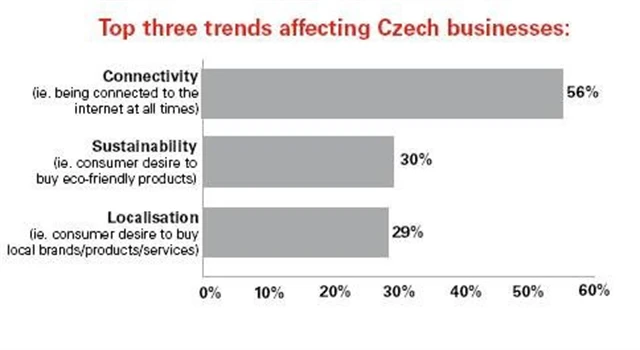 Infrastruktura a příznivé podnikatelské prostředí podporuje využívání inovací a tvoří základ obchodního růstu. To také vytváří lepší spolupráci veřejného a soukromého sektoru a 43% firem věří, že pokud budou upřednostňovat technologické investice, jejich business v příštích letech pokvete. České firmy se také charakterizují jako flexibilní (48%), inovativní (42%) a pokrokově myslící (31%).