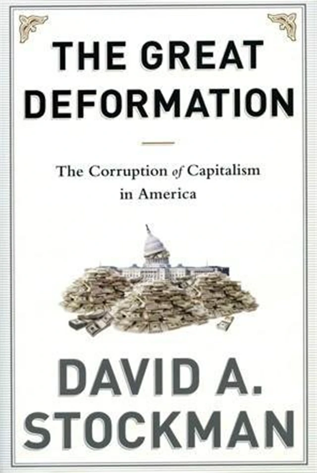 Ve své nové knize The Great Deformation: The Corruption of Capitalism in America (Velká deformace: Korupce kapitalismu v Americe) Stockman popisuje, jak se Spojené státy z ekonomiky založené na volném trhu změnily v zemi s trhem, který je řízen tak, aby prospíval především privilegované menšině. Když vzniknou problémy, jejich řešení se platí penězi daňových poplatníků.