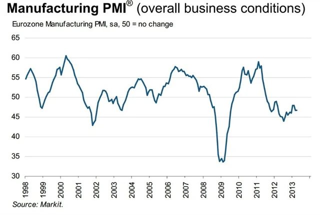 Index nákupních manažerů ve zpracovatelském sektoru v dubnu v eurozóně dopadl trochu lépe, než očekávaly předběžné údaje (46,5 bodu). Dosáhl 46,7 bodu, což stále představuje čtyřměsíční minimum. Zpracovatelský sektor v Nizozemsku vykázal dvouměsíční minimum 48,2 bodu, Německo čtyřměsíční minimum 48,1 bodu, Irsko se propadlo na nejnižší hodnotu za poslední rok a půl (48 bodů) a Rakousko se v dubnu ocitlo na půlročním minimu 47.8 bodu. Lépe si naopak vedly Itálie s 45,5 body na dvouměsíčním maximu stejně jako Španělsko s 44,7 bodu, Řecko s 45 body na téměř dvouletém maximu a Francie s 44,4 bodu vykázala nejlepší výsledek za poslední čtyři měsíce. Všechny země jsou však i nadále pod hranicí padesáti bodů.
