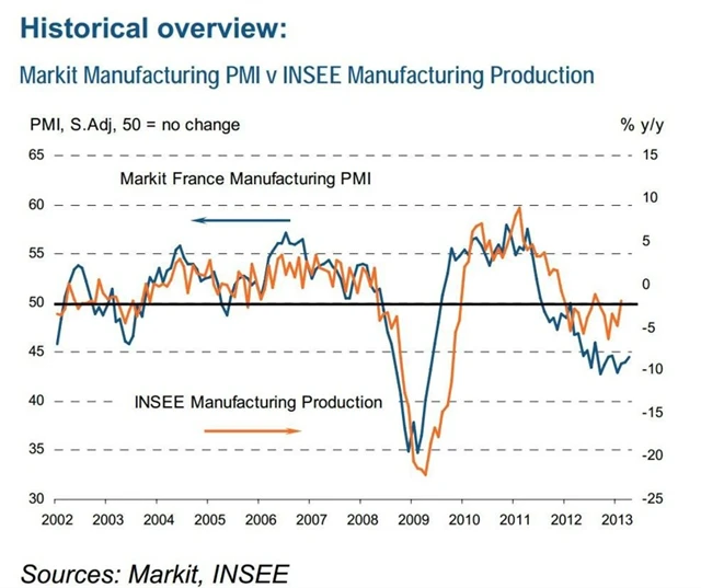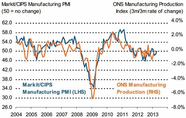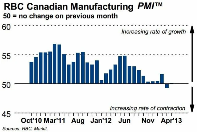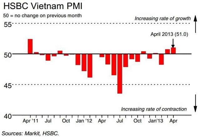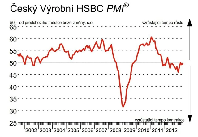 Z údajů od HSBC plyne, že podnikatelské podmínky se v českém výrobním sektoru v dubnu dále zhoršovaly, a to i přes lehké zvýšení výroby. Celkové zhoršení podnikatelského klimatu bylo ovšem jen nepodstatné a zdaleka nebylo tak závažné, jako v posledních měsících roku 2012. Hodnota indexu mírně vzrostla na 49,5 z březnových 49,1 bodu. Výroba stoupla poprvé od loňského června, nové zakázky však dále klesají. Výrazně však klesly ceny vstupů, což firmám ulevuje na nákladech.