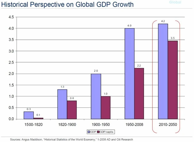 Jim O'Neill, ekonom Goldman Sachs Asset Management, který jako první použil zkratku BRIC, prezentoval svůj poslední dlouhodobý výhled světové ekonomiky v dresu americké banky. Ekonomika bude podle něj značně závislá na růstu Číny, Indie a dalších rozvíjejících se trhů. "Pokud by se Číně v tomto desetiletí podařilo dosáhnout vládou predikovaného 7,5% růstu, a kdyby se i vyspělý svět vrátil k dříve započatému trendu, mohla by světová ekonomika růst zhruba o 4 %," věří O'Neill. Čína se podle něho mění z investičně tažené ekonomiky na ekonomiku taženou spotřebiteli.