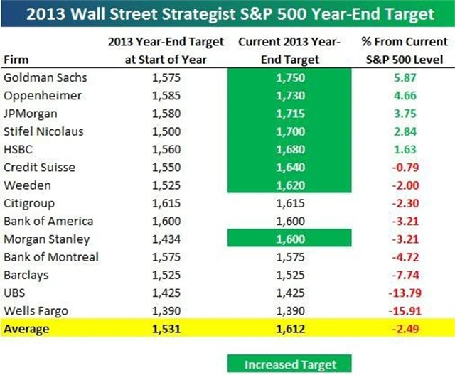 Cílové ceny indexu S&P 500 pro rok 2013 se v posledních dnech a týdnech výrazně zvýšily. V čele stáda býků není nikdo jiný než Goldman Sachs.