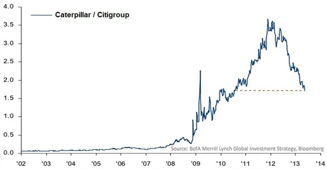Citigroup je jednou z největších bank v USA, také jedním ze symbolů hypotéční a finanční krize. Její hypotéky a úvěry pro domácnosti se odrážejí v jejím hospodaření a ceně akcií, která tak vypovídá o stavu amerického nemovitostního trhu. Caterpillar je naproti tomu považován za indikátor kondice stavebního a těžebního sektoru, které jsou v globálním měřítku do velké míry závislé na kondici čínské ekonomiky.