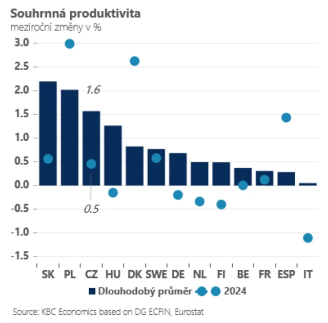 - Vyšší výdaje na zbrojení mohou mít v Evropě a časem i v Česku pozitivní vedlejší dopady do produktivity.