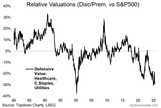 Americké akcie jako celek z historického pohledu rozhodně nejsou levné (CAPE indexu S&P 500 je přes 38), ale kdo hledá, najde. Z indexu S&P 500 se zajímavým oceněním vyčleňují defenzivní tituly. To podle řady analytiků odráží všeobecný optimismus na trhu a víru v to, že akciová rally neskončila (navzdory výše zmíněné očekávané záporné rizikové prémii akcií).