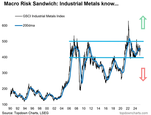 Namísto spekulací o tom, co čeká světové hospodářství, podle některých expertů stačí sledovat právě průmyslové kovy. Ty totiž bývají zpravidla tím prvním, co na změnu ekonomického trendu reaguje. Prolomení hladiny odporu by znamenalo očekávání oživení, prolomení hladiny podpory naopak očekávání hospodářského útlumu.