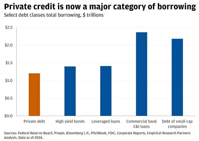 Do hry navíc vstupuje i zdroj financování významné porce investic do AI a potřebné infrastruktury v čele s obřími datovými centry. Tím jsou privátní půjčky neboli private credit. Jde o půjčky od fondů, které nefungují jako banky, ale půjčují peníze, které si předtím samy půjčí jinde. Jde vlastně o takovou dluhovou obdobu private equity.