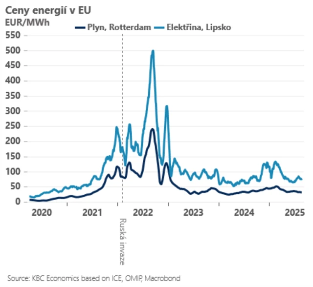 Zaprvé, případné ukončení konfliktu by pravděpodobně mělo pozitivní odezvu na energetických trzích, zejména těch s ropou a zemním plynem. To by se teoreticky zprostředkovaně mohlo projevit i v cenách elektřiny, které jsou v Evropě od začátku konfliktu ve srovnání s USA i Asií nadále výrazně vyšší a poškozují evropská energeticky náročná odvětví (například zpracovatele kovů a chemický průmysl).
