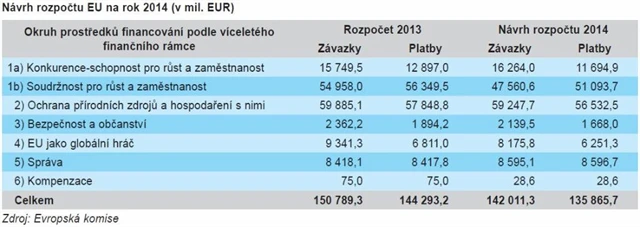 Evropská komise předložila návrh rozpočtu EU na rok 2014