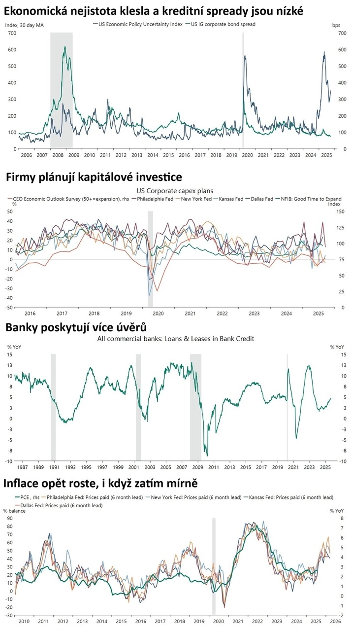 Vedle toho zmiňuje i některé dílčí ukazatele, které ale dokreslují obrázek poměrně dobré kondice amerických spotřebitelů. "Vidíme třeba silnou aktivitu v cestovním ruchu, lidé hodně cestují letadly nebo navštěvují kulturní akce. Podle týdenních dat také stabilně rostou tržby maloobchodů, zrychluje bankovní úvěrování, klesá počet bankrotů a tempo zakládání firem je stále solidní," pokračuje Sløk.