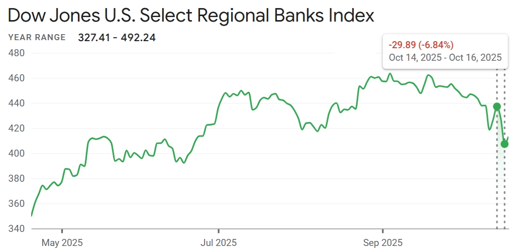 Některé menší americké banky vykázaly nečekaně vysoké ztráty plynoucí z jejich úvěrové expozice a jejich akcie se dostaly pod výrazný prodejní tlak. Ačkoli jde o strukturálně jiný příběh, problémy těchto bank nemohou nepřipomenout relativně nedávný otřes stejného segmentu, kdy v březnu 2023 po bankovním runu zkolabovalo několik regionálních finančních ústavů v čele se Silicon Valley Bank.