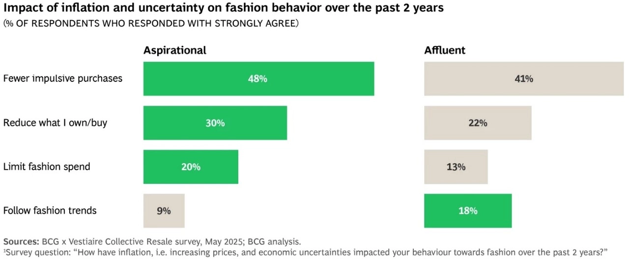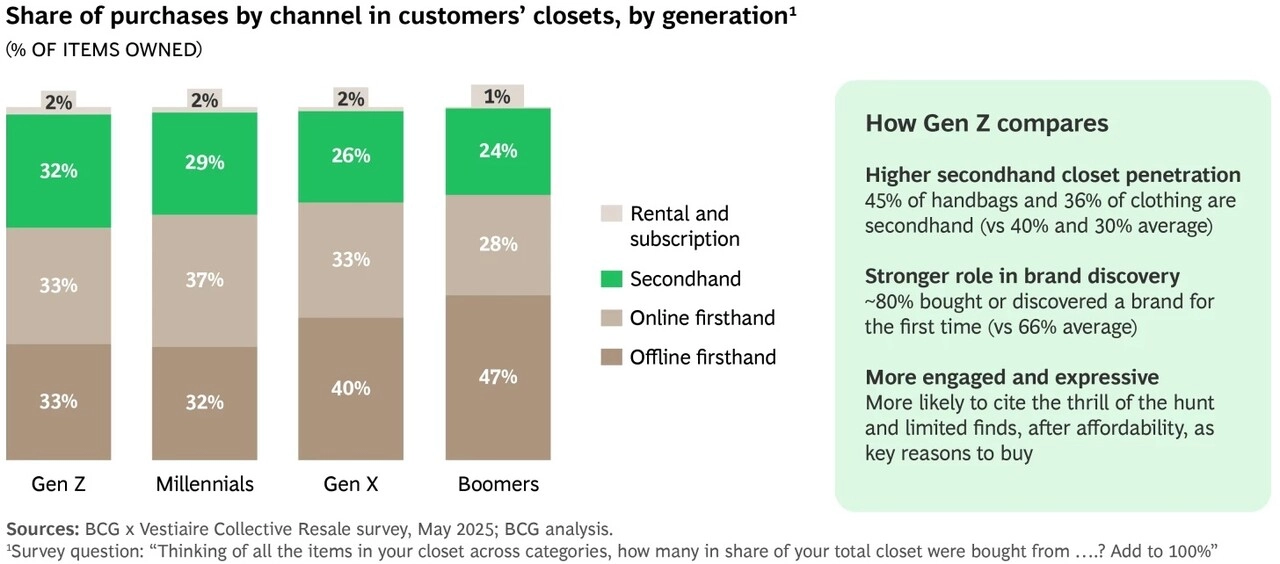 Růst je podporovaný několika faktory. Pro řadu spotřebitelů je nové luxusní zboží jednoduše nedostupné. Na oblečení, kabelkách nebo hodinkách z druhé ruky už jsou ale o poznání příznivější cenovky. Zároveň sílí důraz na udržitelnost a etické nakupování. V případě generace Z (lidé narození mezi lety 1997 a 2012) až třetinu šatníků tvoří věci z druhé ruky, u kabelek je podíl ještě vyšší. A také dochází k celkové proměně vnímání luxusního zboží, kdy lidé ve stále větší míře to, co se jim okouká nebo už se jim nehodí, vracejí na trh i s vědomím toho, že na prodeji oproti nákupní ceně budou většinou tratit, namísto toho, aby věci jen uložili do šatny a tam je nechali bez povšimnutí ležet.
