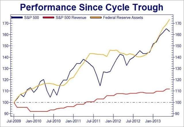 Poznámka: Dominantním "fundamentem" je kvantitativní uvolňování. Bilance Fedu roste jako z vody. Možná se na podzim přestane nafukovat takovou rychlostí. Pak se teprve ukáže, nakolik jsou ostatní vlivy důležité (a naděje investorů na "zdravý růst cen akcií" oprávněné).