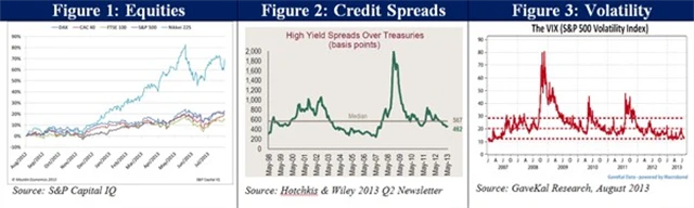 Mnohým investorům nyní připadají vyspělé trhy zdravější a silnější než před lety. Hlavní akciové trhy lámou rekordy a spready korporátních úvěrů ve vztahu k americkým státním dluhopisům podobně jako ukazatele volatility klesají ke svým minimům od roku 2007.