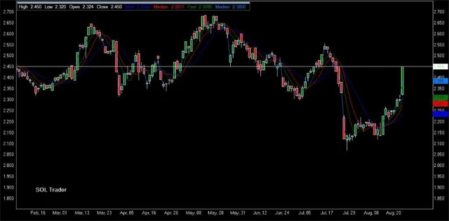 Elektřina se ale také musí z něčehoho vyrábět, takže se vracíme k otázce z milion: Z čeho? A co možné uplatnění solární energie, pokud se náklady na výrobu a provoz solárních panelů podaří stlačit na zajímavou úroveň? To si nechme na příště. Závěrem se raději podívejme na letošní vývoj ceny kontraktu na ethanol na burze v Chicagu (Globex systém CME Group, kontinuální kontrakt, denní data).