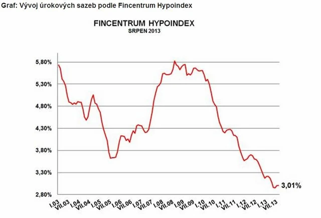 Úroky z hypotéčních úvěrů se dostaly na historické minimum v červnu, od té doby mírně vzrostly na 3,1 % (srpen). Pod červnové minimum 2,95 % už by sazby však klesnout neměly.