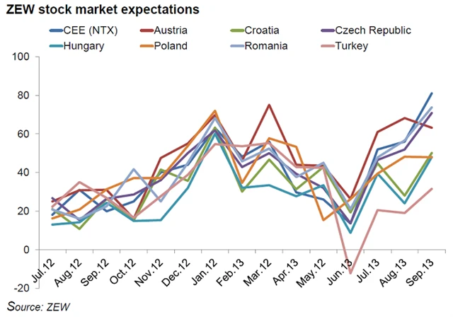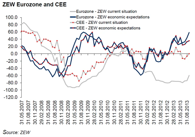 Poslední makrodata z regionu střední a východní Evropy (SVE) potvrzují, že je pozitivní nálada trhu ohledně regionu opodstatněná. Oživení tažené exportem je viditelné. Analytici z Erste očekávají, že se přelije do zlepšení domácí důvěry spotřebitelů. Podnikatelský výhled dle indexu Ifo naznačuje vymezení regionu SVE vůči rozvíjejícím se trhům, a to především díky jeho blízkosti k oživující eurozóně. Index ZEW/Erste, který měří ekonomická očekávání, potvrzuje, že investoři na regionálních trzích s názorem o probíhajícím oživení souhlasí.