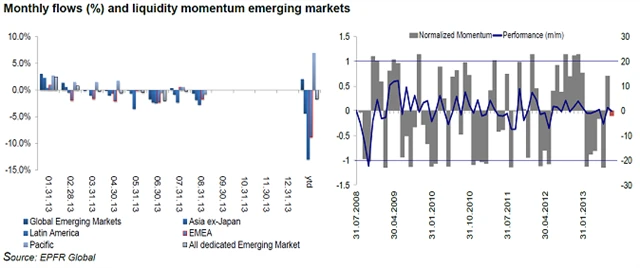 Navzdory náznakům oživení nenastala výraznější změna toků peněz do akcií na rozvíjejících se trzích. Globálním akciovým fondům se daří relativně dobře, ale fondy zaměřené na akcie z rozvíjejících se trhů zaznamenaly od začátku roku odliv ve výši 17,3 miliardy USD.