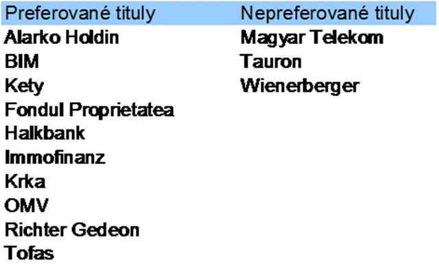 V seznamu nepreferovaných titulů ponechala Erste společnost Wienerberger, ale nahradila JSW a LPP společnostmi Magyar Telekom a Tauron.
