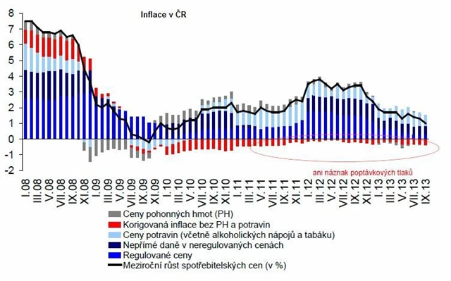 ČNB začala intervenovat, protože její analýza ukázala, že nicnedělání povede k poklesu inflace pod nulu. A vývoj inflace její obavy potvrzoval. Inflace poklesla pod 1 %, tedy pod hranici cílovaného pásma. Navíc měnově-politická inflace poklesla k nule. K tomu přidejme například ohlášený pokles cen elektřiny - a jsme s celkovou inflací v záporných hodnotách.