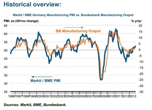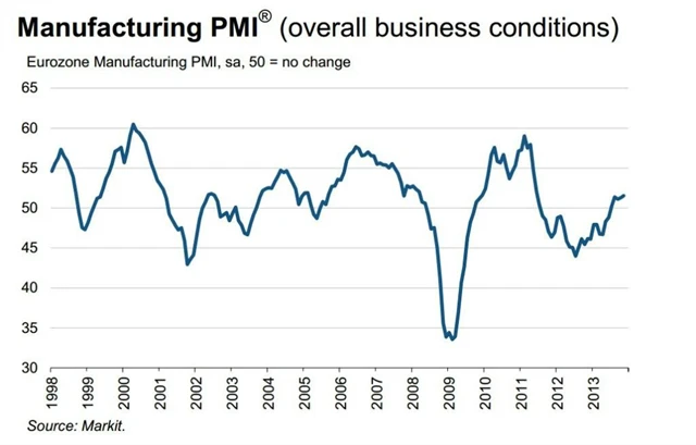 Průmyslová aktivita vzrostla v listopadu na 53,4 bodu z říjnových 53 bodů. Jde o nejsilnější od března 2012. Rostly nové objednávky a s nimi i zaměstnanost.