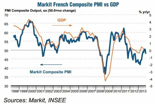 Index nákupních manažerů ve zpracovatelském průmyslu ve Francii nedopadl tak špatně, jak předvídala předběžná data. Sektor se dále propadl pod padesátibodovou hranici z říjnových 49,1 bodu na 48,4 bodu, předběžná data však počítala s pesimističtějším scénářem v podobě 47,8 bodu. Produkce sektoru klesá již čtvrtý měsíc v řadě, což je důsledkem poklesu nových zakázek. Zaměstnanost také klesá a odráží slabou domácí i zahraniční poptávku po produkci francouzského zpracovatelského sektoru.