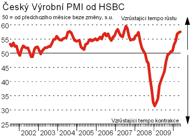 Údaje PMI z českého výrobního sektoru, sestavené pro banku HSBC společností Markit, v květnu ukázaly na další významné zlepšení tržních podmínek. Hlavní Výrobní PMI pro Českou republiku od HSBC, kompozitní jednociferný indikátor celkového výkonu výrobního sektoru, se v květnu zvýšil na 57,6, což je nejvyšší hodnota od srpna 2007 a šestá nejvyšší v historii průzkumu.
