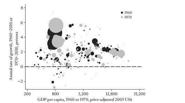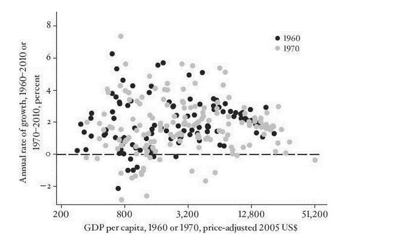 Největší prostor věnuje Daeton boji s nešťastně vybíranými nebo interpretovanými ekonomickými veličinami. Například podle tohoto grafu to vypadá, že od 60. let rostou chudé země podobným tempem jako ty bohaté.