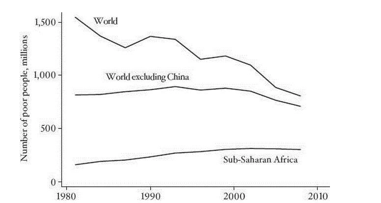I u tohoto grafu ale Deaton přiznává možné problémy s africkými daty. Později napadá samotnou hranici chudoby jako podivný konstrukt. "Proč přikládat takový význam docela malému rozdílu v řádu centů?" ptá se. "Proč je někdo těsně pod čarou považován za chudého a zaslouží si speciální pomoc či pozornost Světové banky, zatímco někdo těsně nad ní údajně pomoc nepotřebuje a musí si se vším poradit vlastními silami?"