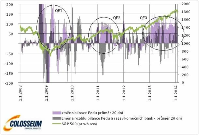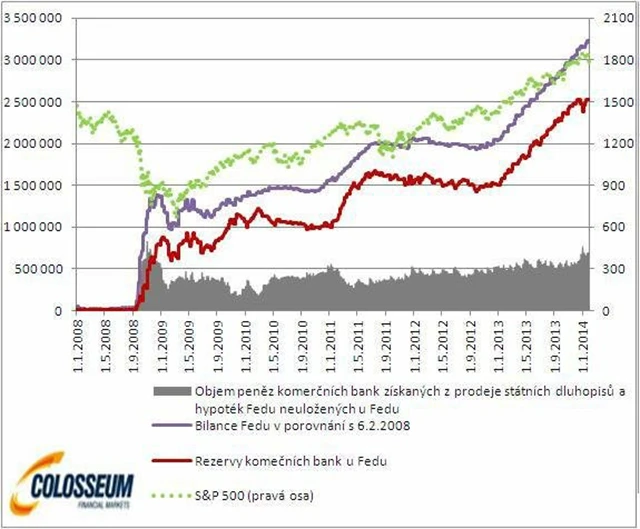- I přes omezování QE Fed stále tiskne velké množství peněz.