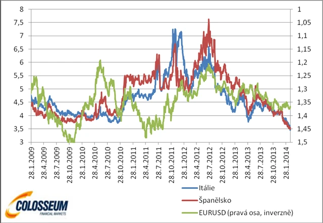 Požadovaná výnosnost desetiletých španělských i italských dluhopisů poklesla na 3,5 %, což je nejnižší úroveň od roku 2006. Výnosnost podobných řeckých dluhopisů propadla na 7,69 %, nejníže od května 2010. Španělsko plánuje letos omezit objem vydaných obligací, aby snížilo svou zadluženost.