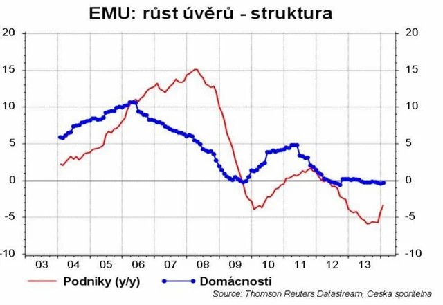 U úvěrů pro podniky je situace přitom stále podstatně horší než u domácností, kde úvěrová emise stagnuje. Primárním důvodem je zmíněný kolaps investic.