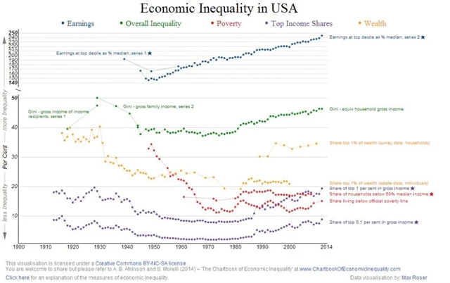Dlouho přehlížené téma nerovnosti příjmů a bohatství se po finanční krizi stává stále důležitějším. Institut pro nové ekonomické myšlení (Institute for New Economic Thinking) proto spustil projekt s názvem The Chartbook of Economic Inequality, v němž se snaží zmapovat nerovnost ve více než 25 zemích za více než 100 let.