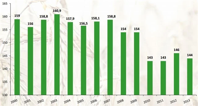 Celkové prodeje v segmentu gastronomických zařízení klesají od roku 2011, mezi lety 2009 a 2013 složenou měrou -6 %.