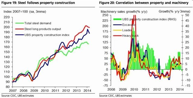 Tchao Wang z UBS odhaduje 15% pravděpodobnost výrazné korekce nemovitostního trhu, která by mohla způsobit zpomalení růstu čínského HDP na 5 % v roce 2015. Poslední pokles prodejů nemovitostí vedl ale také třeba Wej Jao ze Société Générale ke konstatování, že "nemovitostní sektor nyní představuje pro čínskou ekonomiku velkou hrozbu".