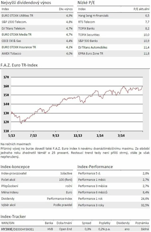 Evropské trhy, obzvláště ty se společnou měnou, se stále sbližují a propojují. Proto přijde vhod odpovídající akciový barometr pro jednotnou měnovou oblast. I proto konstruktér indexů Solactive vyvinul ve spolupráci s HypoVereinsbank a F.A.Z. Index F.A.Z. Euro.