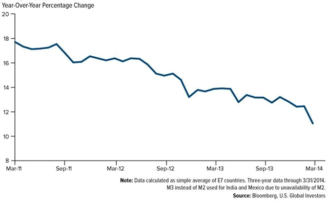 Trendy v uvedeném cyklu nejsou specifické jen pro USA. Vše platí i v případě stimulativních politik ECB a Japonska. Na celém světě aplikuje programy monetární stimulace stále více zemí, i když během posledních několika let vidíme zpomalení růstu peněžní nabídky v zemích E7 (Čína, Indie, Brazílie, Mexiko, Rusko, Indonésie a Turecko).