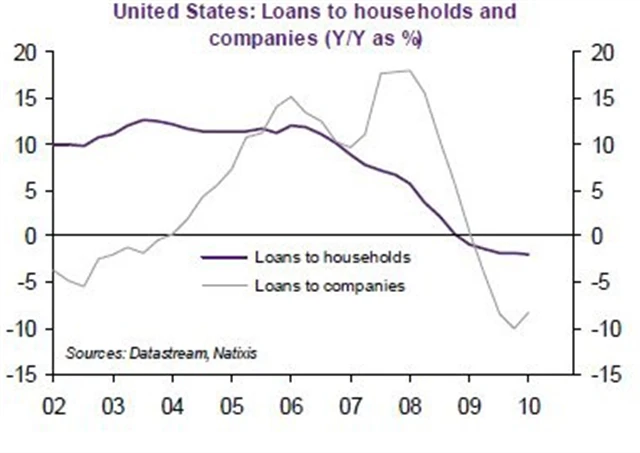 Navíc peníze natištěné Fedem se do reálné ekonomiky nedostanou. Skončí totiž na účtech fondů a bank, které je nepustí dál do ekonomiky. Banky si potřebují na úrokových rozdílech poléčit ztráty a navýšit svůj vlastní kapitál kvůli přísnějším požadavkům na svoji kapitalizaci. Takže banky nepůjčují. Peníze, které se nedostanou do ekonomiky, nemohou být inflační.