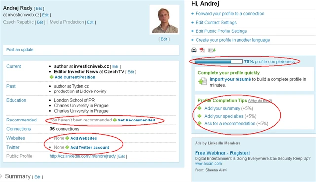 Snažte se mít vyplněných 100 procent informací. Majitelé kompletních profilů mají statisticky o 40 procent větší šanci, že budou osloveni. A inspirujte se úspěšnými manažery, kteří mají svůj veřejný profil na této síti.