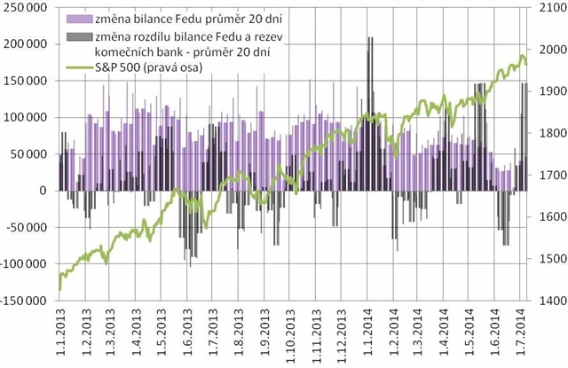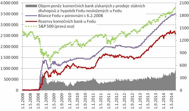 Fed postupně omezuje program kvantitativního uvolňování, aktuálně odkupuje aktiva za 35 miliard USD měsíčně. Index S&P 500 má za sebou od března roku 2009 za přispění třech kol této podpory růst o 190 %. Motor akciové rally ale není tak jednoznačný.