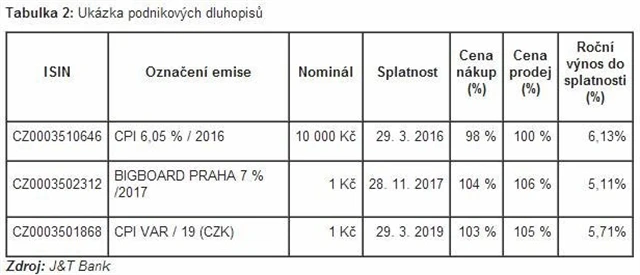 Jednou z dalších možností je vsadit na firemní dluhopisy. To je ale možnost pouze pro zkušené investory-střadatele, kteří si jsou vědomi rizika. Pokud by firma zkrachovala, investor se nemusí ke svým penězům dostat. Při nákupu je také rozhodující minimální částka, za kterou je možné dluhopisy pořídit.