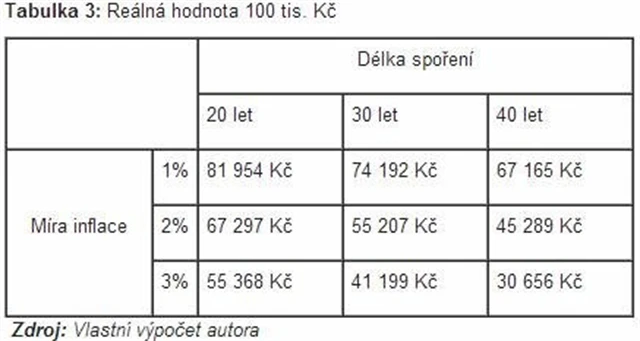 V takto dlouhém horizontu jsou spořicí účty naprosto nevhodné. Největším rizikem není tržní riziko (kolísavost hodnoty investice), ale riziko inflace. Při nulovém zhodnocení se 100 tisíc Kč při 3% průměrné roční inflaci za 40 let smrskne reálně na něco málo přes 30 tisíc Kč.